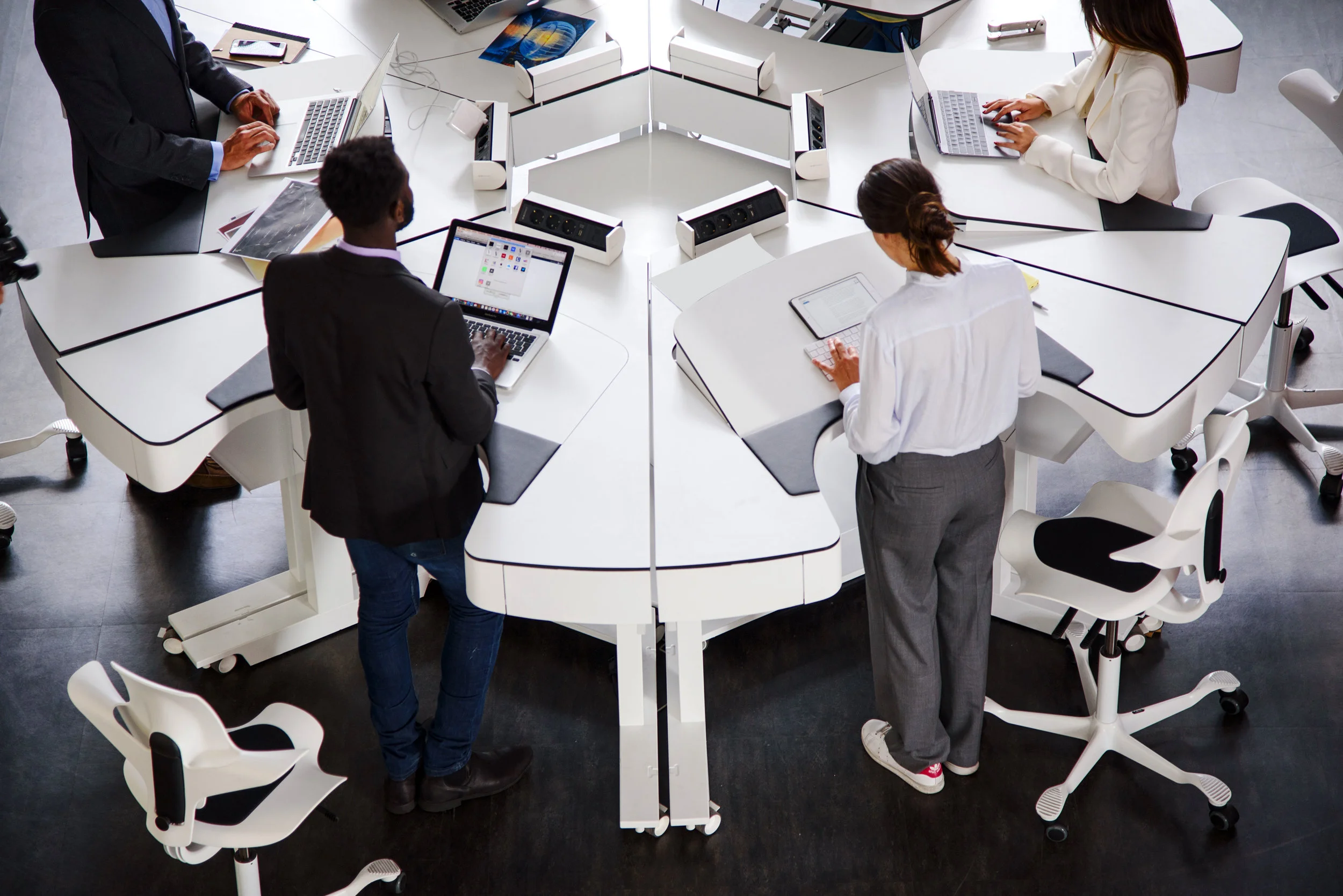 Collaboration depends of eye contact, in fact 70% of our communication is non-verbal communication. We think the only way to guarantee an effective collaboration is keeping eye contact between every member of the team in the same workplace.